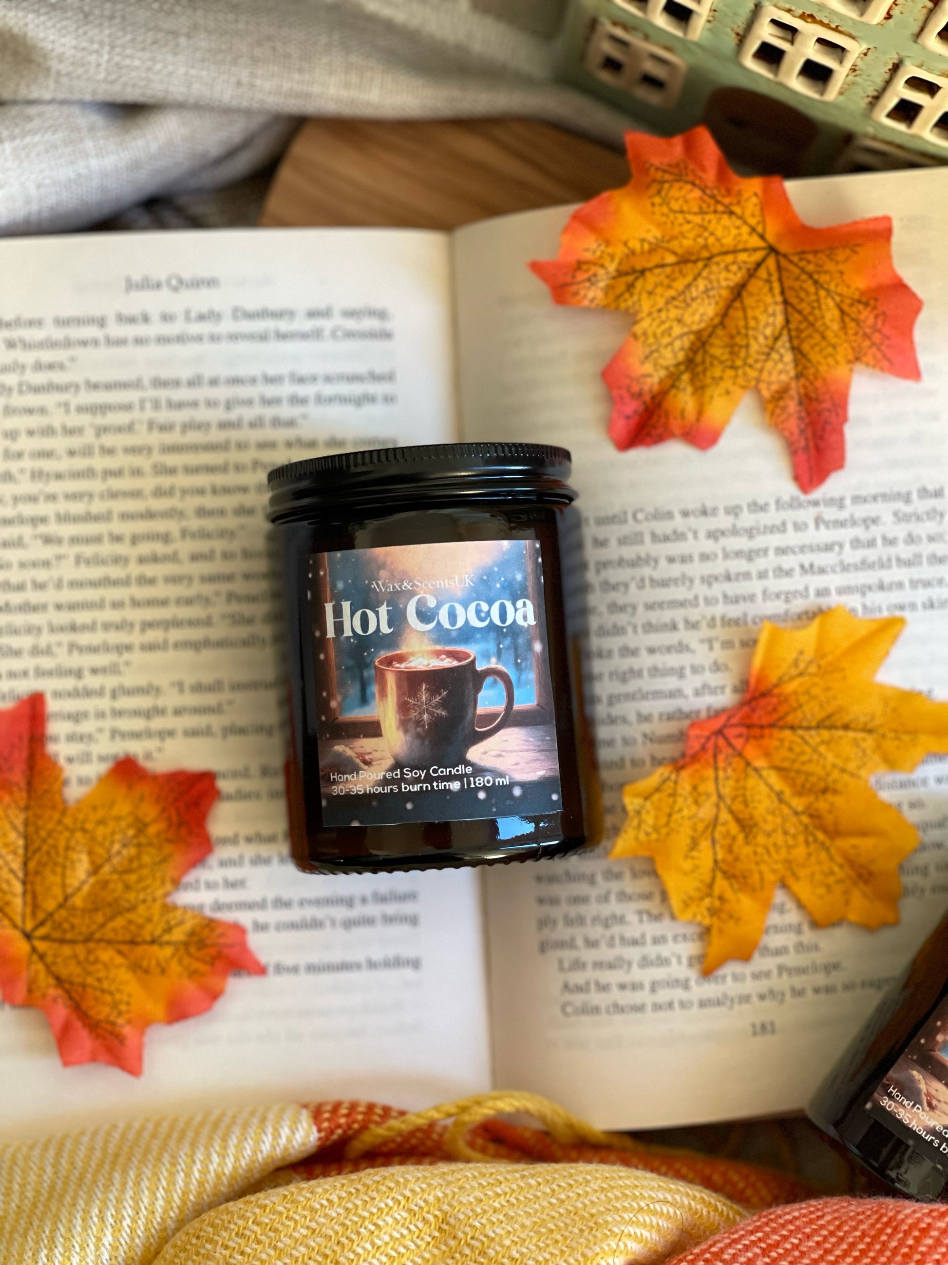 Indulge in the sweet and decadent fragrance of Hot Cocoa with this natural soy wax candle. This candle is made in the UK with the best quality ingredients, such as pure soy wax and premium fragrance oils. The scent is a delicious and creamy blend of rich chocolate, vanilla sugar, and marshmallow. It will fill your room with the aroma of a hot cup of cocoa on a cold day. The soy wax is made from natural soybeans, and the candles are hand-poured in the UK.