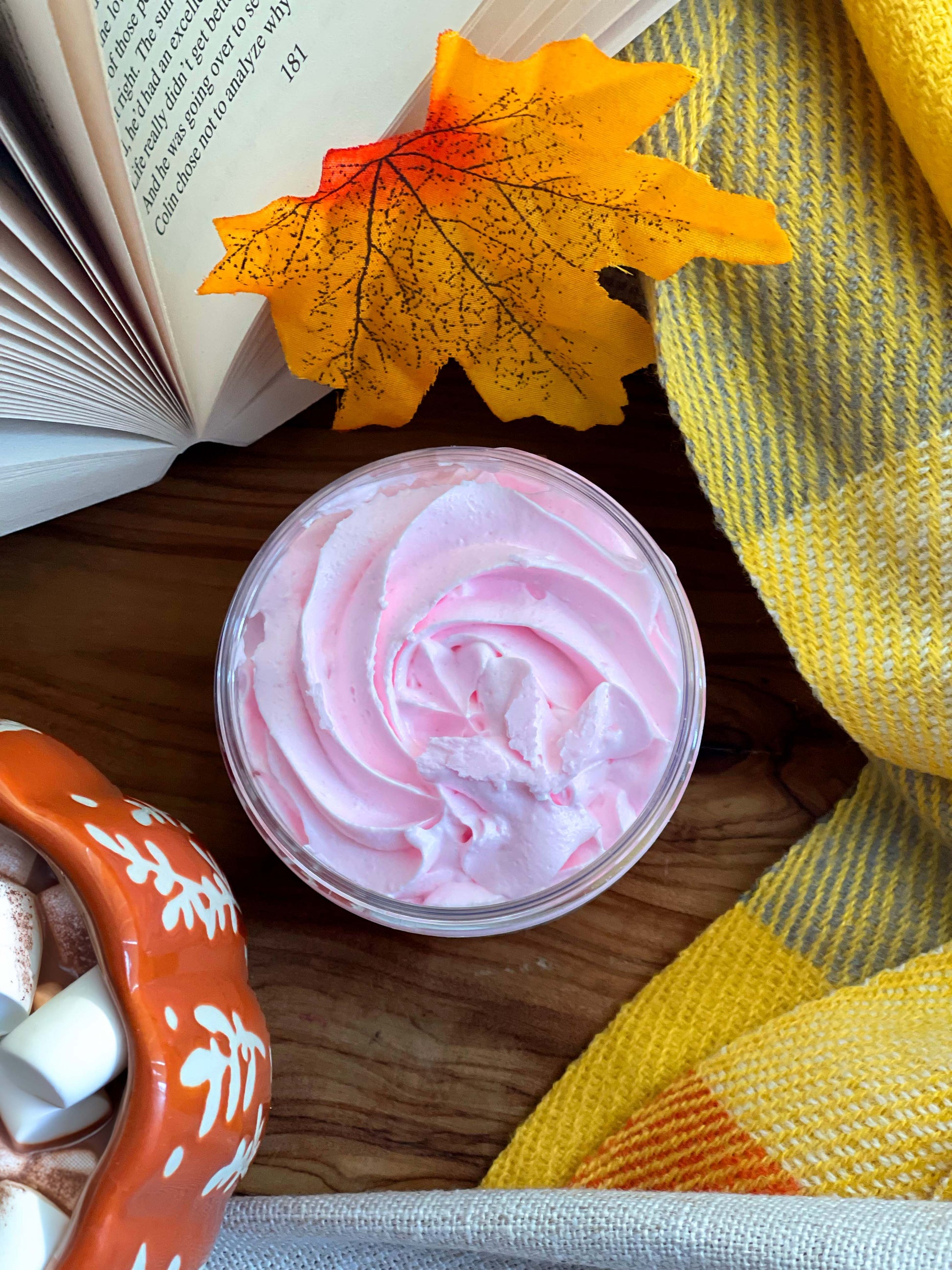 Unveil the allure of Blush Clouds Vegan Friendly Whipped Soap, a luxurious bath-time treat that transforms your cleansing routine into an enchanting experience. This delightful whipped soap captivates the senses with an irresistible blend of ambery woods, magenta moss, and a hint of sweetened praline. The journey begins with a luscious fusion of opulent berries and effervescent fruits, creating a vibrant and inviting aroma.