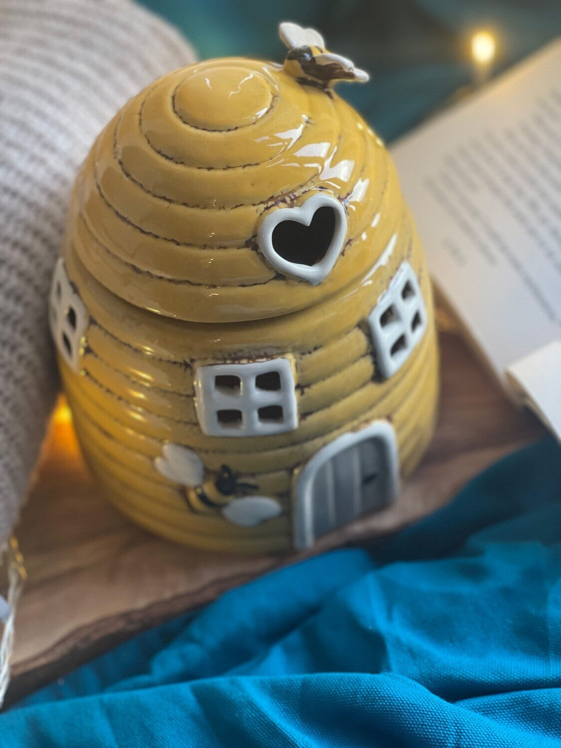 Perfect for the living room, bedroom, or any area in need of a warm, inviting touch, this wax burner serves as both a functional decor piece and a captivating centrepiece. Simply add a wax melt and a tealight candle below, and let the gentle glow and fragrance create a calming ambiance. An ideal gift for home lovers or a unique addition to your own decor collection, the Rustic Beehive Yellow Wax Burner combines elegance and practicality, adding a distinctive style to any setting.