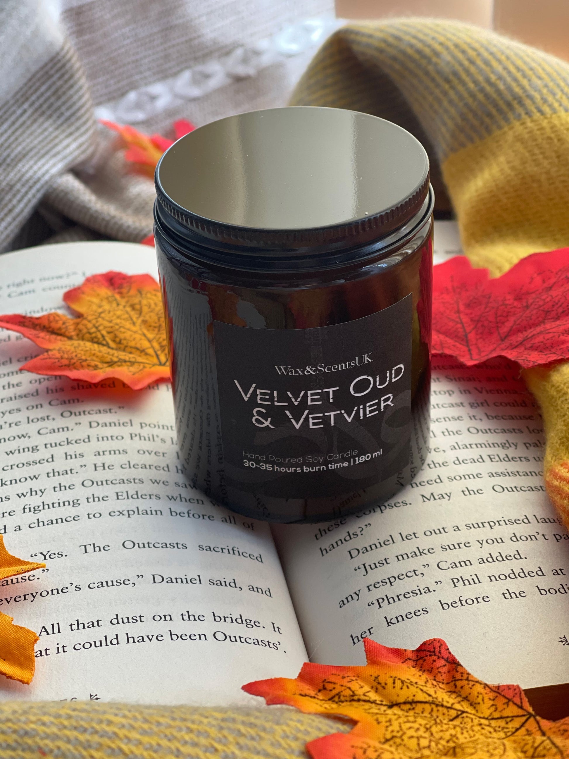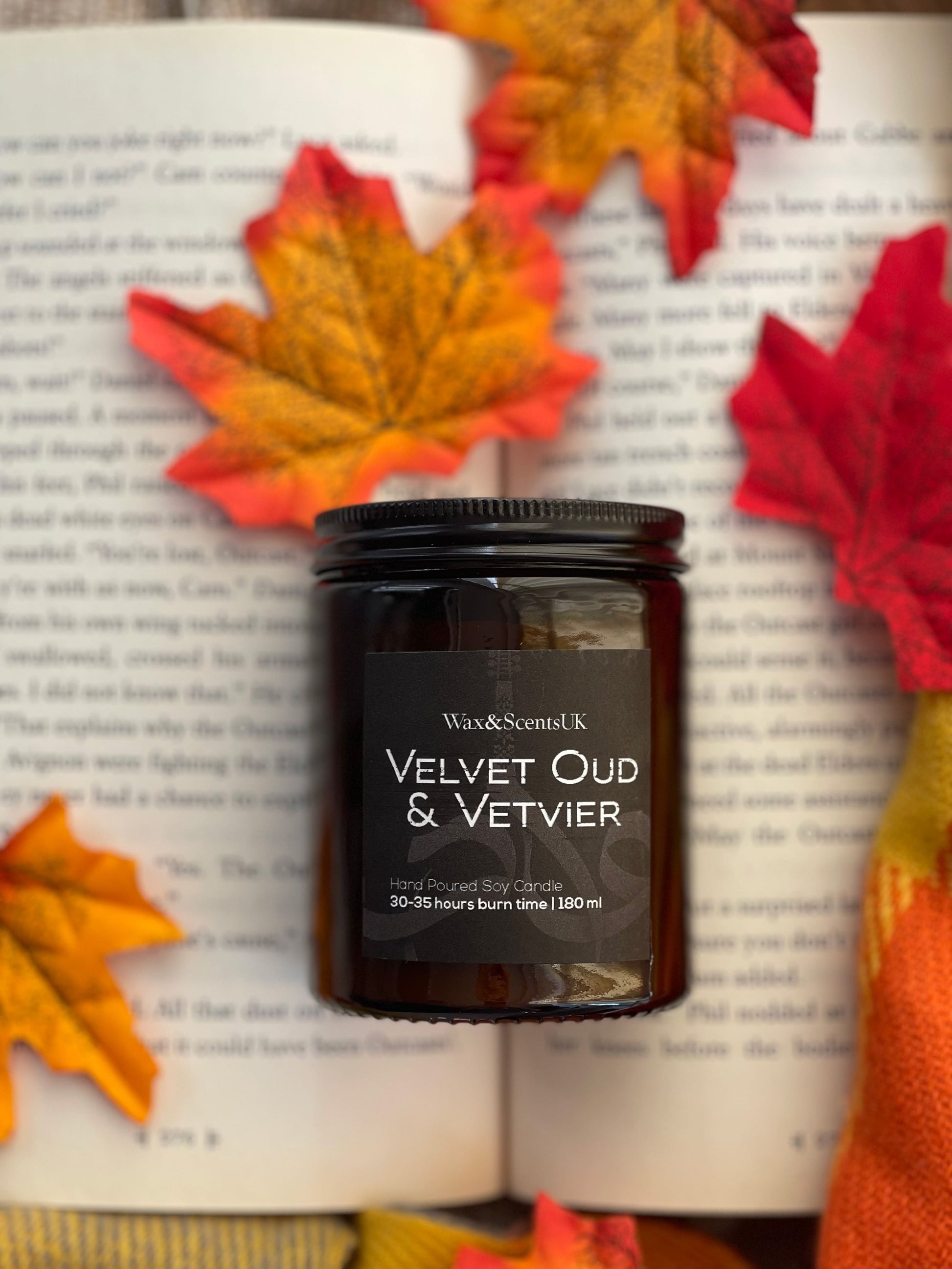 Experience the luxurious and exotic fragrance of Velvet Oud & Vetvier with this natural soy wax candle. This candle is made in the UK with the best quality ingredients, such as pure soy wax and fragrance oils. The scent is a rich and complex blend of warm sandalwood, vetvier, praline, and oudh. It will fill your room with the aroma of a sophisticated and elegant oriental perfume. The soy wax is made from natural soybeans, and the candles are hand-poured in the UK.